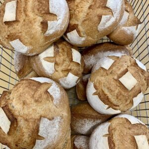 Anys més tard, l’Ivan es va formar amb diversos Paysans Boulangers (pagesos forners) a França, on va treballar com a forner i després va exercir l’ofici a Anglaterra. El 2016 van començar a pensar que la solució per la finca, de 10 ha d’apenes dimensions, podria passar per cultivar blats panificables amb valor afegit i fer-ne un molt bon pa i bons dolços.